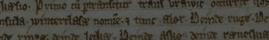 ”Inde uthøi. Deinde mæthelsten. Deinde nutarn. Deinde olæ. Deinde ornæ. Deinde neffø. Deinde rudmi.”